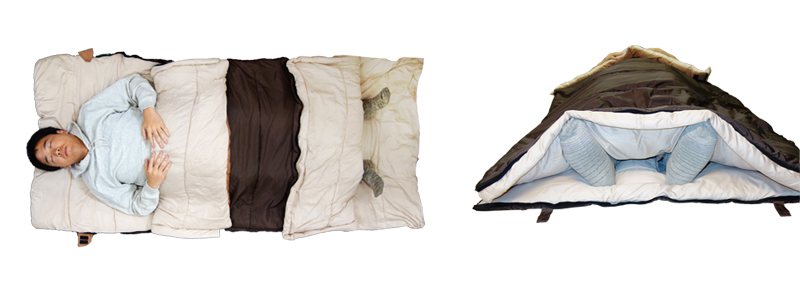 暑いときは足元を開けたり、お腹のところを残したり、普通の布団ではできない温度調整ができます。